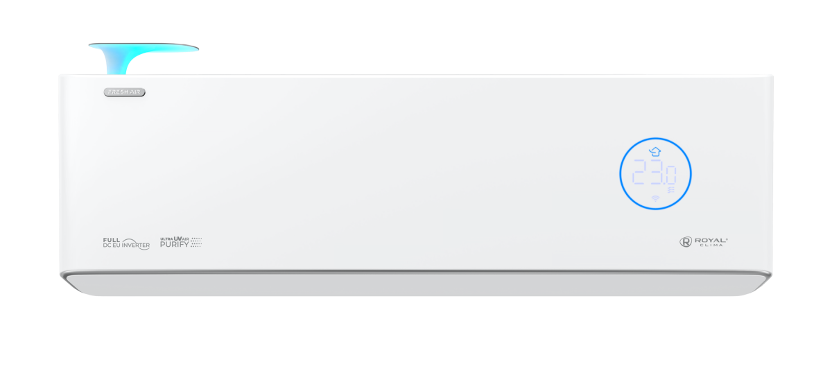 - Функция забора и очистки свежего воздуха (производительность 60 м3/ч в приточном режиме). Сплит-система ROYAL FRESH имеет функцию подачи свежего воздуха извне с производительностью до 60 м3/ч. Она подает очищенный, насыщенный кислородом воздух необходимой температуры в помещение даже при температуре наружного воздуха -15°C.