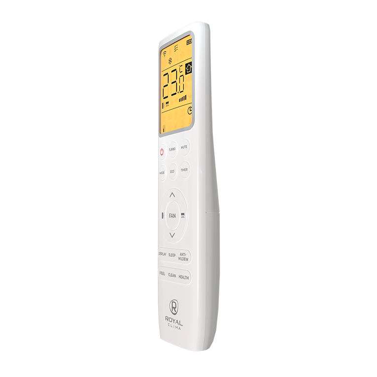 Эргономичный пульт дистанционного управления с интуитивно понятным управлением и ярким дисплеем с подсветкой позволяет легко задать необходимые параметры работы сплит-системы.