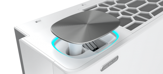 - Дисплей внутреннего блока, отображающий поток свежего воздуха в цвете (синий: включен, белый: выключен).